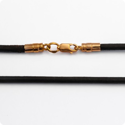 3 ммШнур из натуральной кожи украшен цилиндрическими золотыми вставками на концах шнура и золотым замком.